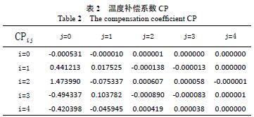 根據式(7)工控機利用軟件MATLAB 中的函數[CPT,CPint, b, bint, state]=regress(PT, A, 0.05) 即可求出溫度補償系數CP。