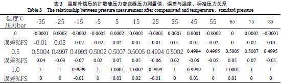 通過對擴散硅壓力變送器的特性研究和大量的實驗數據分析發現,擴散硅壓力變送器的壓力值隨溫度變化滿足一定的規律,基于該規律提出了適用于擴散硅壓力變送器的高階溫度補償模型。