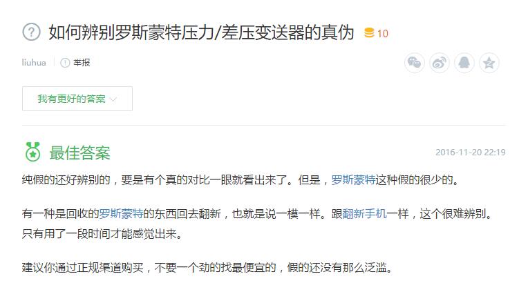 1、如何辨別羅斯蒙特壓力/差壓變送器的真偽?