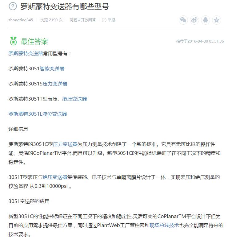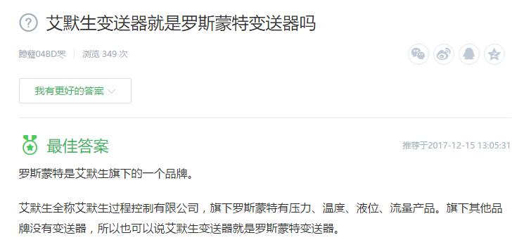 艾默生全稱艾默生過程控制有限公司,旗下羅斯蒙特有壓力、溫度、液位、流量產品。旗下其他品牌沒有變送器,所以也可以說艾默生變送器就是羅斯蒙特變送器。