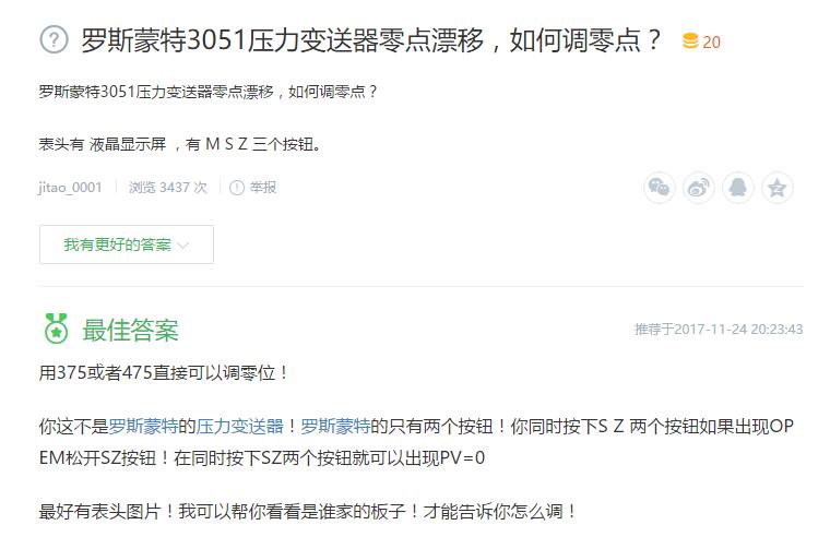 2、羅斯蒙特3051壓力變送器零點漂移,如何調零點?(羅斯蒙特3051壓力變送器零點漂移,如何調零點?表頭有 液晶顯示屏 ,有 M S Z 三個按鈕。)