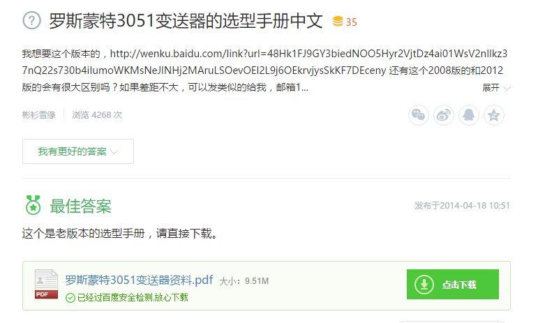 1、羅斯蒙特3051壓力變送器的選型手冊中文(我想要這個版本的,http://wenku.baidu.com/link?url=48Hk1FJ9GY3biedNOO5Hyr2VjtDz4ai01WsV2nllkz37nQ22s730b4iIumoWKMsNeJlNHj2MAruLSOevOEl2L9j6OEkrvjysSkKF7DEceny