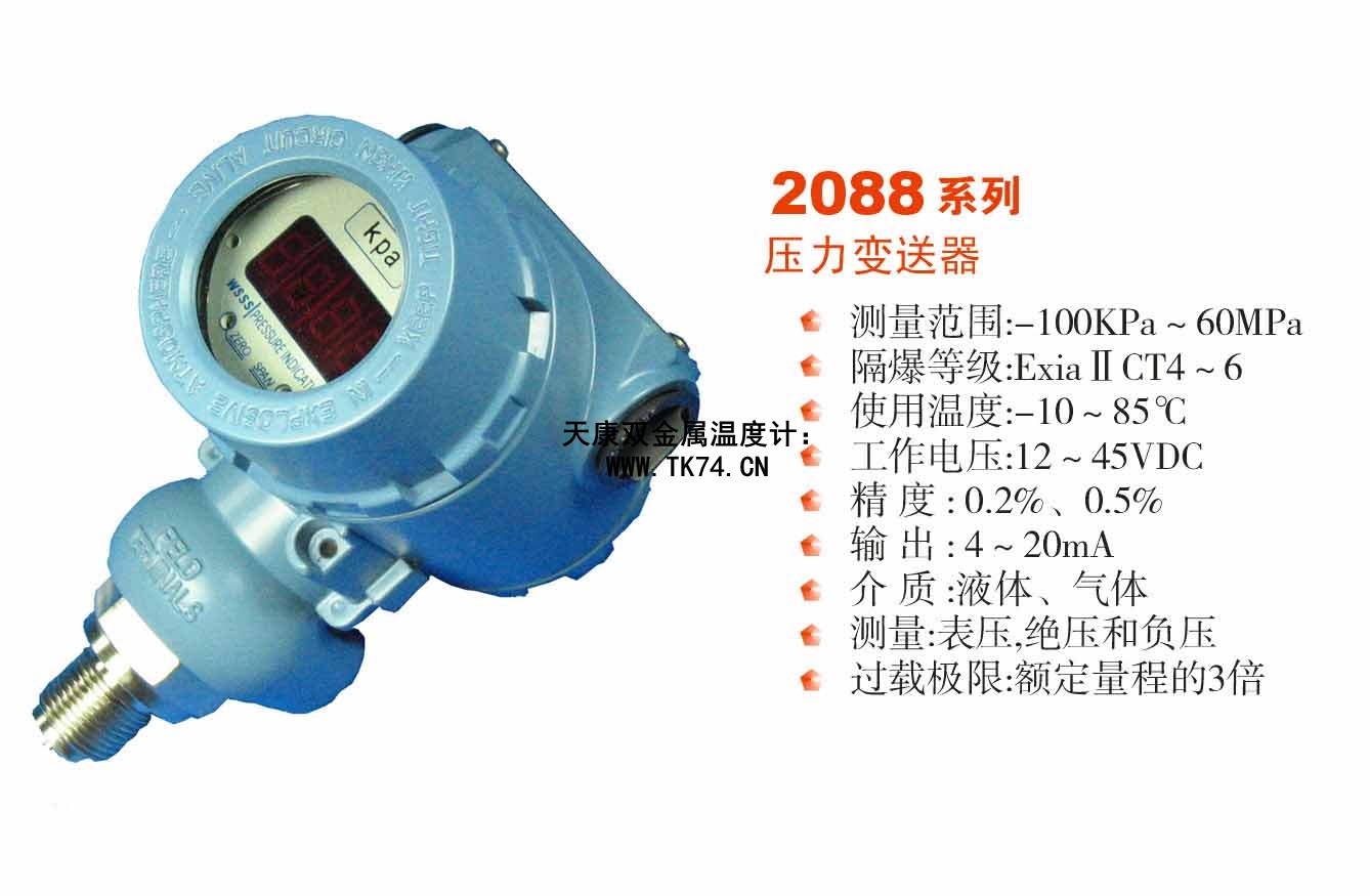 壓力變送器(pressure transmitter)是指以輸出為標(biāo)準(zhǔn)信號的壓力傳感器,是一種接受壓力變量按比例轉(zhuǎn)換為標(biāo)準(zhǔn)輸出信號的儀表。它能將測壓元件傳感器感受到的氣體、液體等物理壓力參數(shù)轉(zhuǎn)變成標(biāo)準(zhǔn)的電信號(如4~20mADC等),以供給指示報(bào)警儀、記錄儀、調(diào)節(jié)器等二次儀表進(jìn)行測量、指示和過程調(diào)節(jié)。
