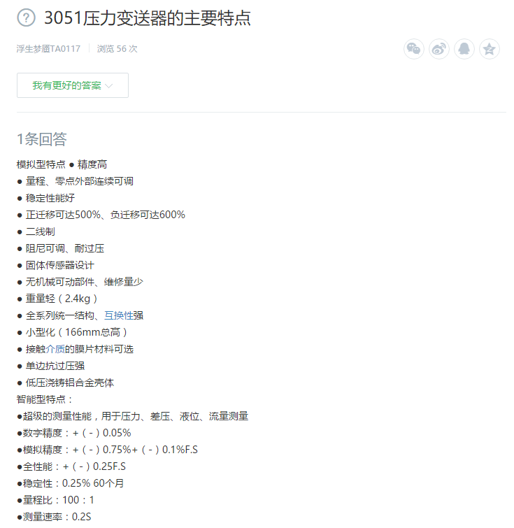 1、3051壓力變送器的主要特點
