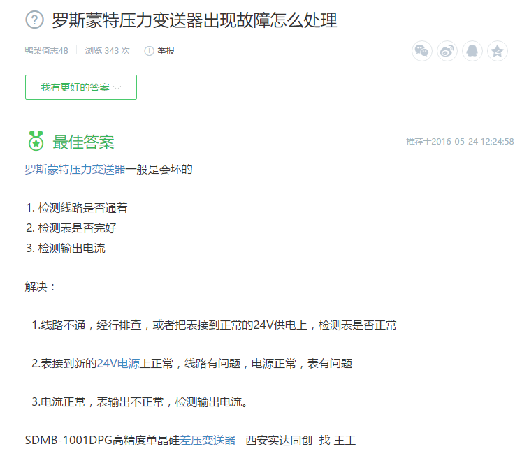 1、羅斯蒙特壓力變送器出現故障怎么處理?