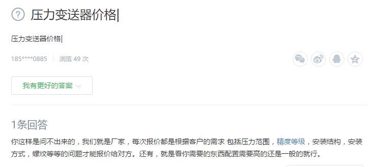 客戶提問(1):壓力變送器價格一般是多少